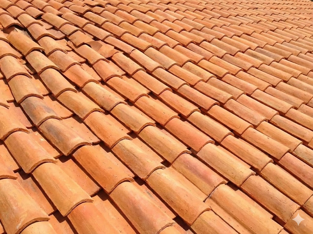 Tegola in terracotta dalla forma curva, tradizionale per coperture di tetti, resistente e tipica dell’architettura mediterranea.