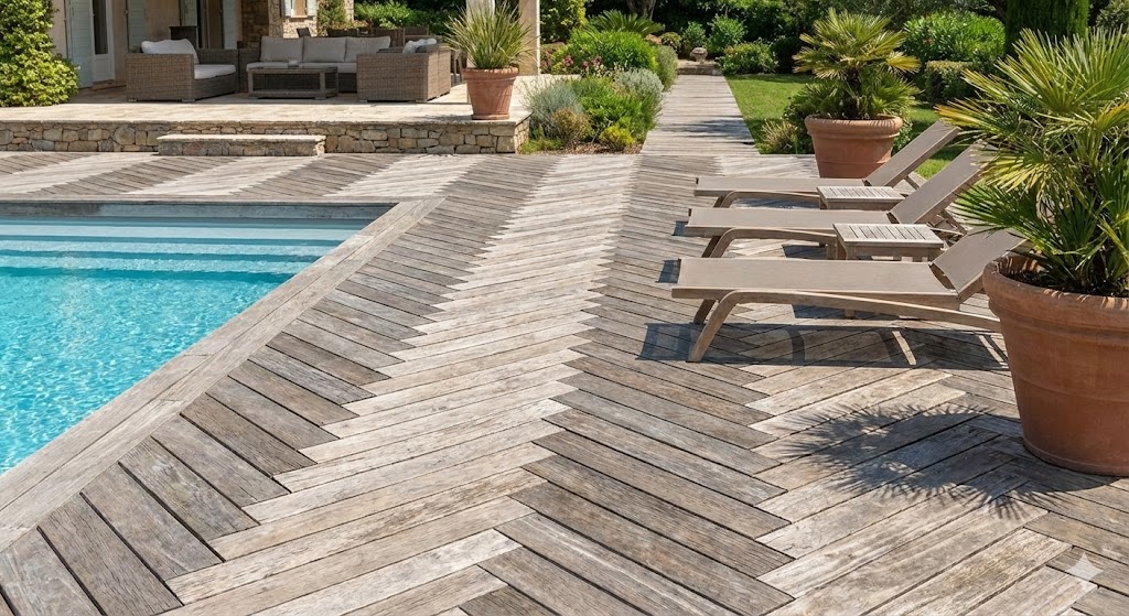Pavimenti resistenti agli agenti atmosferici, realizzati in legno, compositi o materiali tecnici, ideali per terrazze e giardini.