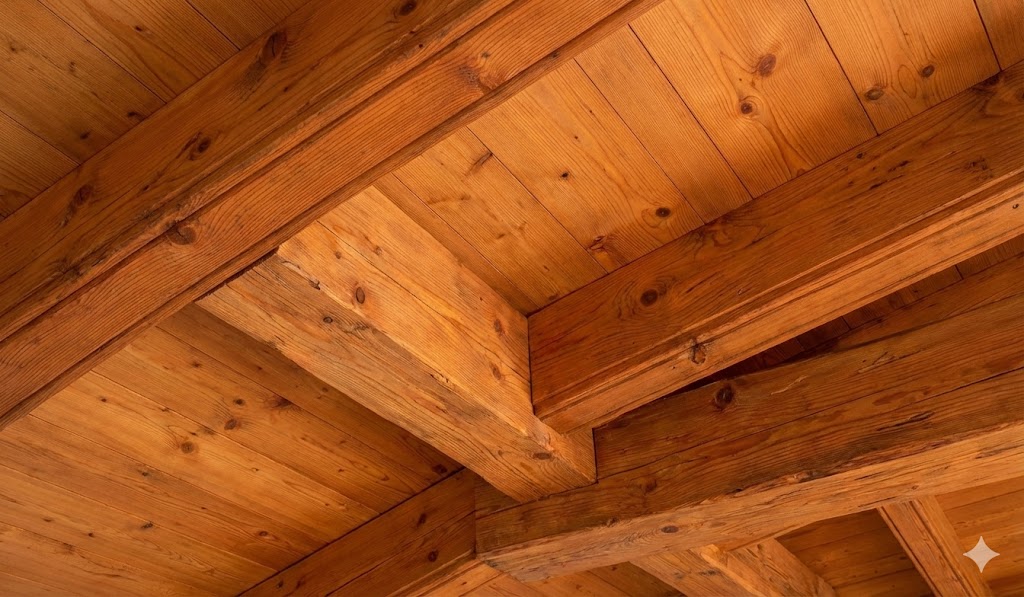 Travi in legno massello con bordo naturale irregolare, valorizzano l’aspetto estetico per arredi e rivestimenti.