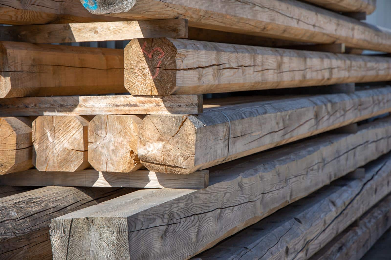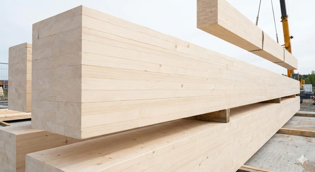 Travi in legno massello composte da lamelle incollate, stabili, resistenti e adatte a strutture portanti.